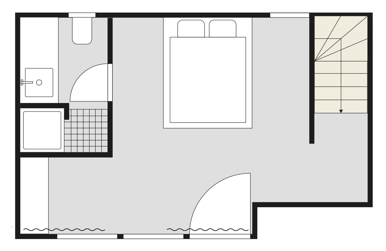 Das Little LandLoft ist ideal für zwei Personen und verfügt im Obergeschoss über ein komfortables 160 × 200 cm Bett. Im Untergeschoss gibt es zusätzlich ein Schlafsofa, auf dem ein weiterer Gast übernachten kann – bitte bedenkt, dass es nicht den Komfort einer vollwertigen Matratze bietet. Für Reisen mit Baby oder Kleinkind stellen wir auf Wunsch gern ein Zustellbett zur Verfügung.